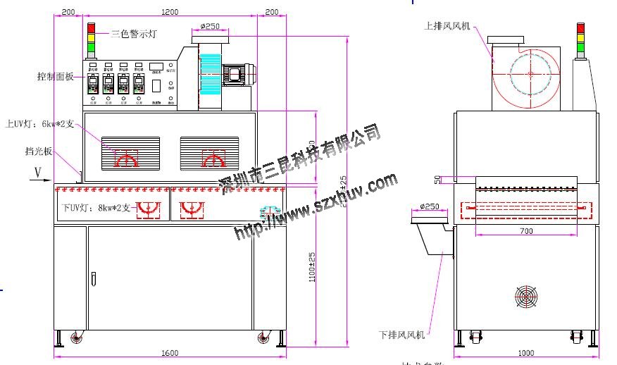 2、UV燈總長(zhǎng):800mm、弧長(zhǎng):700mm