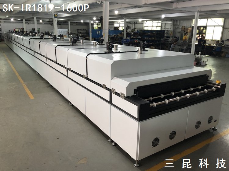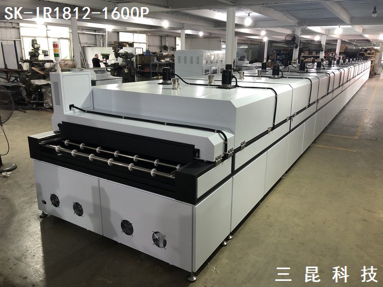 大型IR隧道爐玻璃絲印烘干固化生產(chǎn)線加熱烘烤線SK-IR1812-1600P
